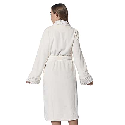 Ivory Colour Plush Long Robe with Faux Fur Collar (64x115cm)