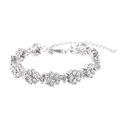 Lustro Stella White Floral Bracelet in Silver Tone 8 Inch