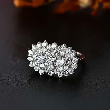 J Francis - SWAROVSKI ZIRCONIA Cluster Boat Ring in Rhodium Plated Sterling Silver 4.06 ct.