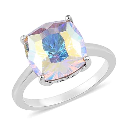 J Francis AB Crystal Ring in Platinum Overlay Sterling Silver