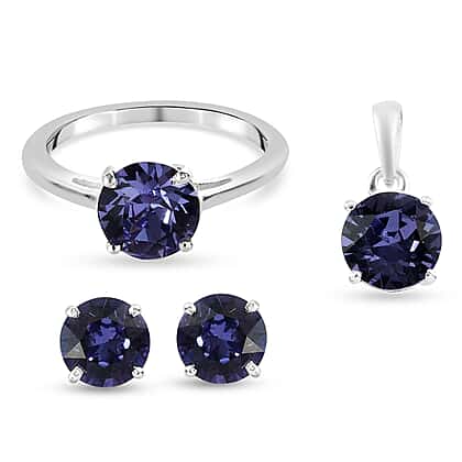 J Francis 3 Piece Set - Crystal from Finest CZ Tanzanite Colour Crystal Solitaire Ring, Pendant and Stud Earrings (with Push Back) in Sterling Silver