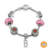 J Initial Charm Bracelet for Childrens in Simulated Pink Colour Bead, Red and White Austrian Crystal Size 6.5 Inch with Silver Tone
