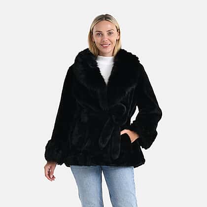 Step out feeling polished and indulgently warm in this stunning La Marey black faux fur coat, designed to wrap you in comfort while giving any outfit a sophisticated lift. Made from 100% polyester, it offers a plush, velvety texture that feels gorgeous against the skin. The generous one-size silhouette, fitting up to size 20, includes a flattering waist belt, deep pockets and dramatic faux fur trims that create a chic, confident look. With a 76x61cm fit and a cosy 1100g weight, it’s perfect for cold-weather styling and ideal for women who want timeless, easy elegance without compromising comfort.