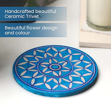 Jaipur Blue - Hand Painted Ceramic Trivet (Size 15 Cm) - Blue