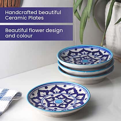 Jaipur Blue - Set of 4 Hand Painted Ceramic Plates (Size 15 Cm) - Blue - White