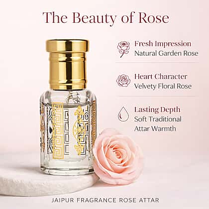 Enjoy a touch of timeless floral elegance with Jaipur Fragrances 100% Natural Concentrated Perfume in Rose. Created for women who appreciate refined scents, this alcohol-free attar blends pure rose oil with nourishing jojoba oil for a smooth roll-on application that feels gentle on the skin. The delicate yet rich rose fragrance develops beautifully throughout the day, offering a soft, feminine aroma that feels uplifting and sophisticated. Housed in an ornate glass bottle with intricate gold detailing and a polished cap, this 5ml perfume arrives in an elegant presentation box, making it ideal for personal indulgence or thoughtful gifting.