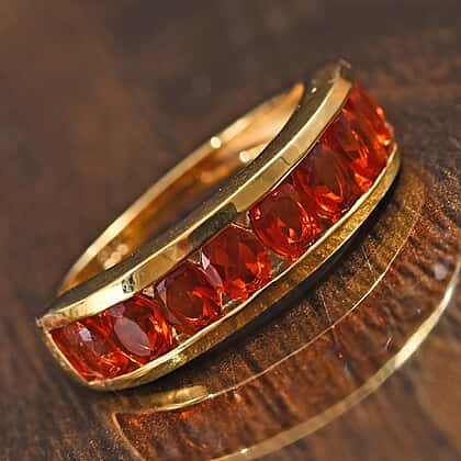 1 Carat Jalisco Fire Opal Half Eternity Band Ring in Gold Plated Sterling Silver