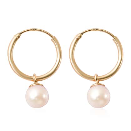 Japanese Akoya Pearl Hoop Earrings in Yellow Gold Overlay Sterling Silver