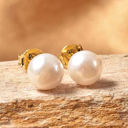 Japanese Akoya Pearl Stud Earrings in Gold Plated Sterling Silver