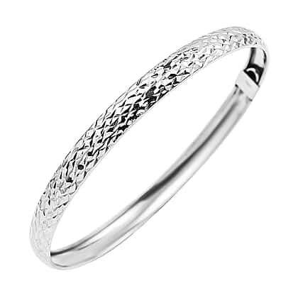 A finely crafted texture pattern brings a distinct tribal finish to this silver bangle, which is available in Size 7.5. The textured bangle is Italian-made and comes in 925 sterling silver with a platinum overlay. The classy jewellery is versatile and pairs well with casual and formal dresses. With a smooth finish, the bangle is good for everyday wear.