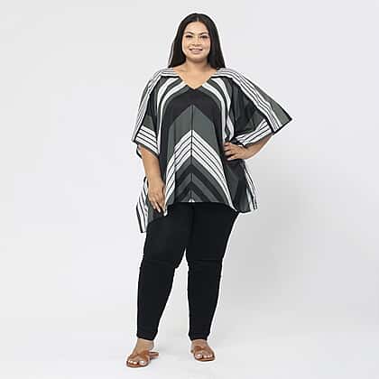 Give your wardrobe a new look with this classic Tamsy V-neck short kaftan top. It has a v-neckline, v-shape back, elbow sleeves, and a comfy and lightweight fabric. Pair it with trousers, jeans or leggings, making it the perfect piece for any occasion.