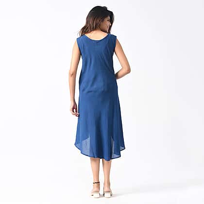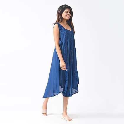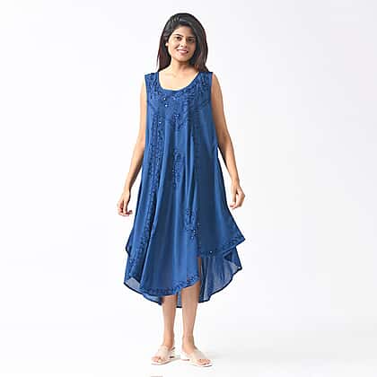 Tamsy 100% Viscose Umbrella Dress with Sequin Floral Embroidery (One Size 8-18) - Cobalt