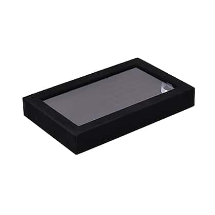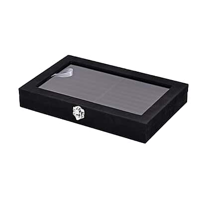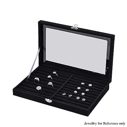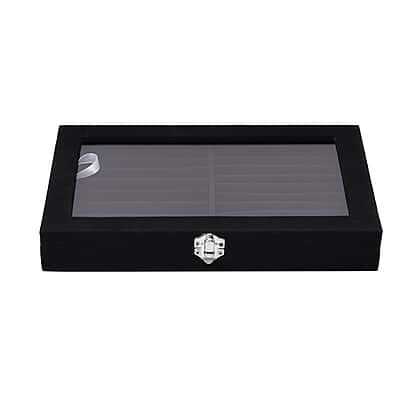 Portable Velvet Ring Box with Glass Window (Half Big & Small Ring Rows) (Size - 29x18x4 cm) - Black