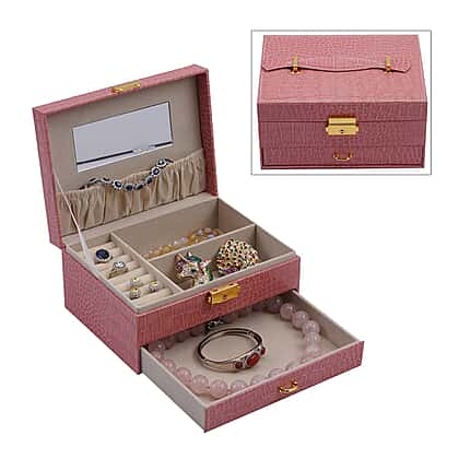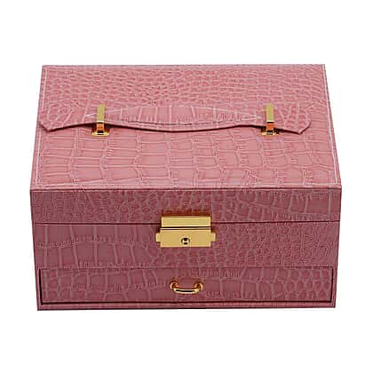 Double Layer Croc Embossed Jewellery Box with Lock (Size 20x15x10 Cm) - Pink