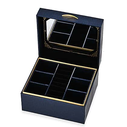 Leatherette Faux Lizard Skin Pattern 2 Layer Jewellery Box (Size 18x16x10 cm) - Navy
