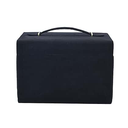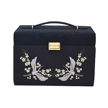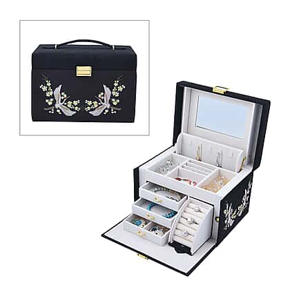 Multifunctional 4 layer Embroidered Jewellery Organizer with Handle (Size 26x19x18 cm) - Black