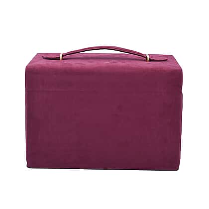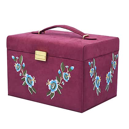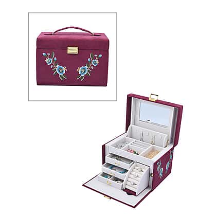 Multifunctional 4 layer Embroidered Pattern Jewellery Organizer with Handle (Size 26x19x18 cm) - Burgundy