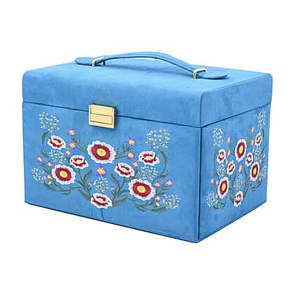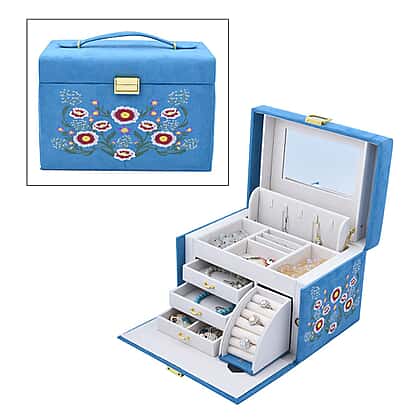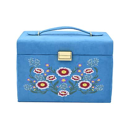Multifunctional 4 layer Embroidered Pattern Jewellery Organizer with Handle (Size 26x19x18 cm) - Teal