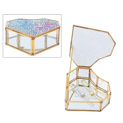 Heart Shaped Floral Pattern Jewellery Box - Blue, Purple & Yellow