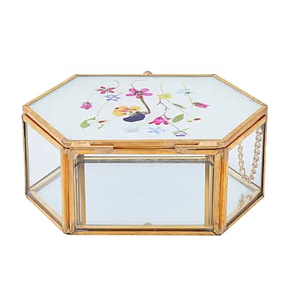 Hexagon Shaped Floral Pattern Jewellery Box - White, Yellow & Red