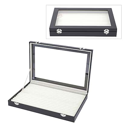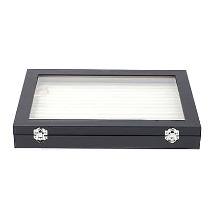 Leatherette paper 150 slot Ring box with Acylic window Anti Tarnish lining with two latch - Black