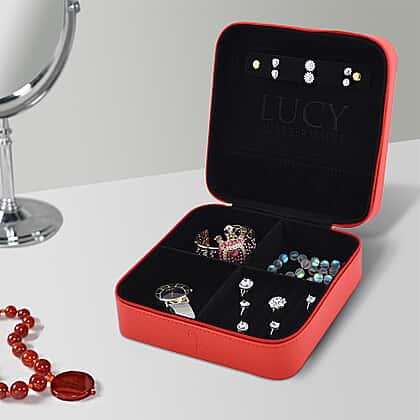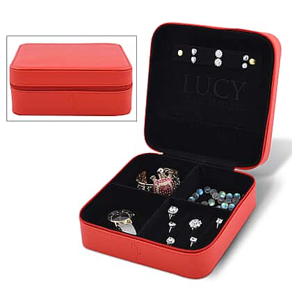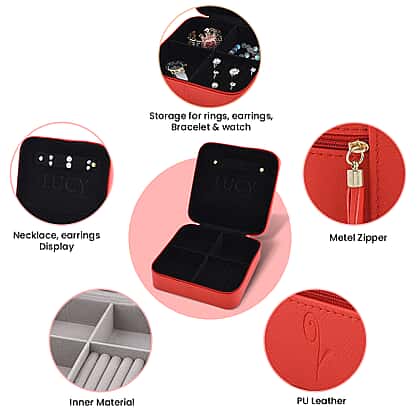LucyQ - Portable Large Jewellery Box with Zipper Closure (Size 20x20x8 Cm) - Red