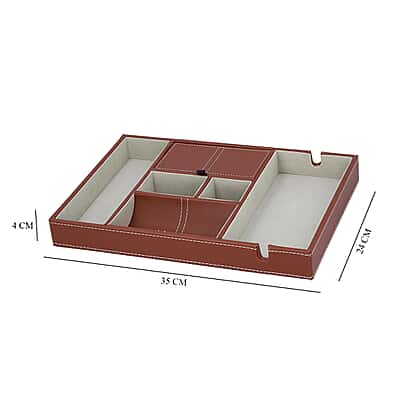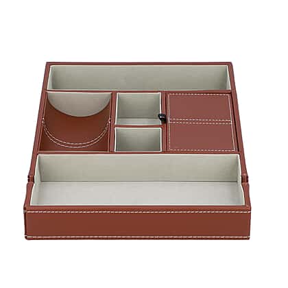 Faux Leather Men's 6 Section Jewellery Organiser - Brown
