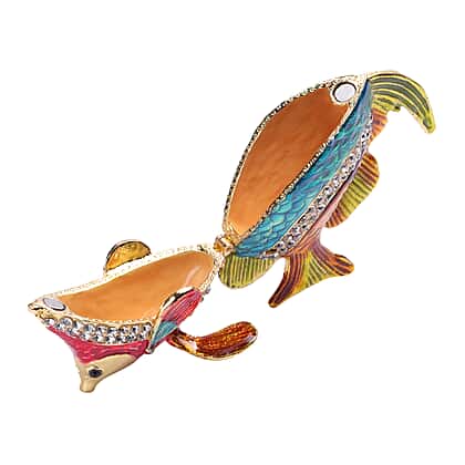 Multi Austrian Crystal Studded Enamelled Fish Trinket Box