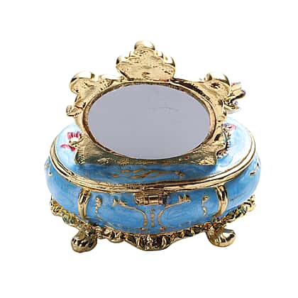 Multi Austrian Crystal Studded Enamelled Mirror Trinket Box