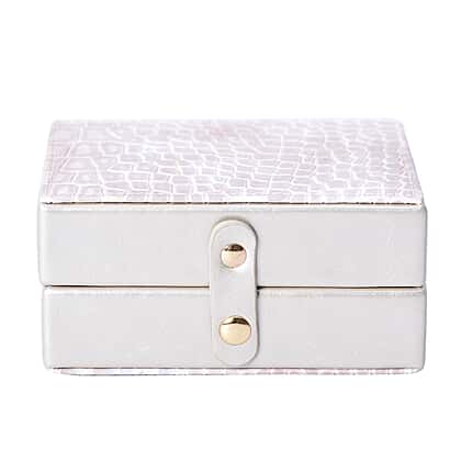 Portable Croc Skin Pattern Jewellery Box with Button Closure - Silver and Grey