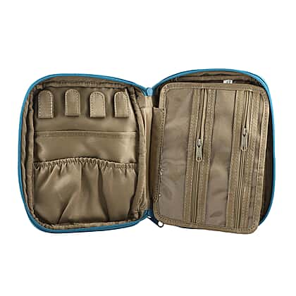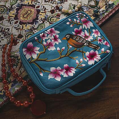 Portable Hand Printed Sparrow Theme Jewellery Organiser - Teal