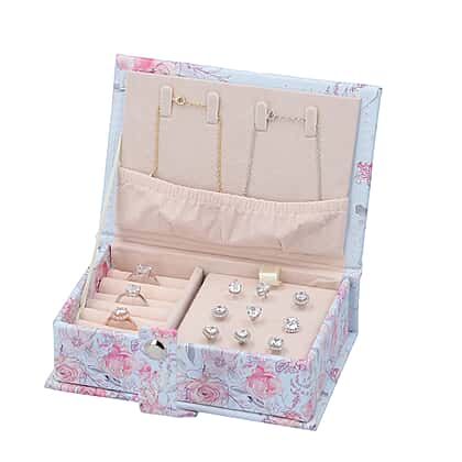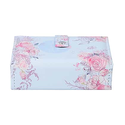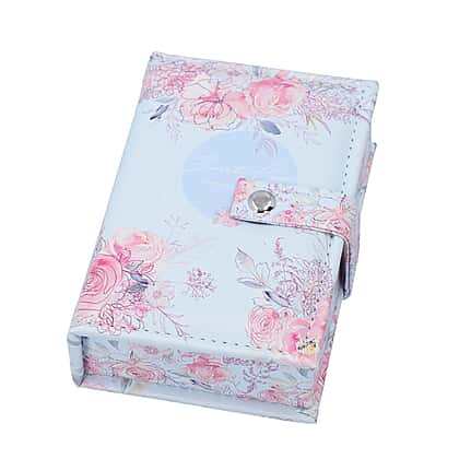 Portable Jewellery Ink Rose Pattern Book with Magnetic Button Lock (Size:15x10x4.5Cm) - Baby Blue and Pink