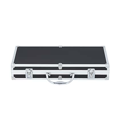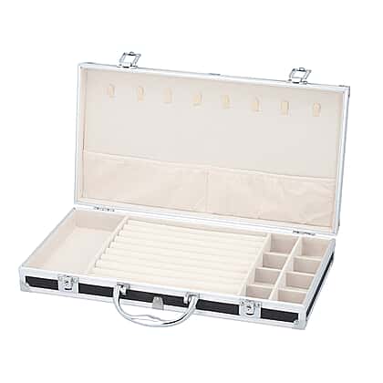 Portable Small Dot Pattern Jewellery Box with Handle and Anti Tarnish Lining in Lock Clasp- Black