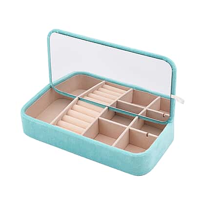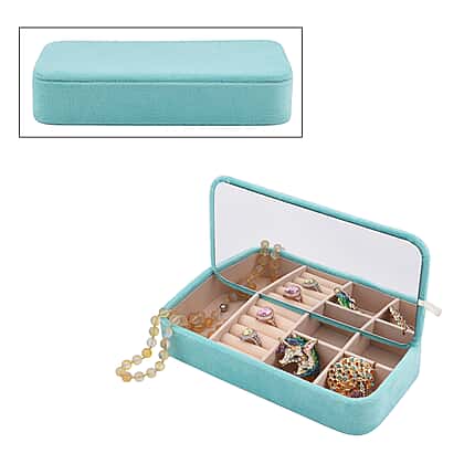 Portable Velvet Jewellery Box with Inside Mirror and Anti Tarnish Lining - Aquamarine Colour