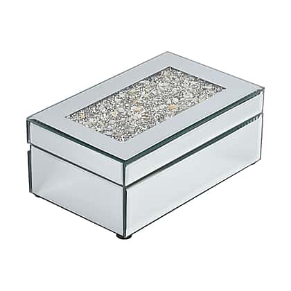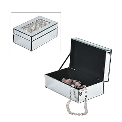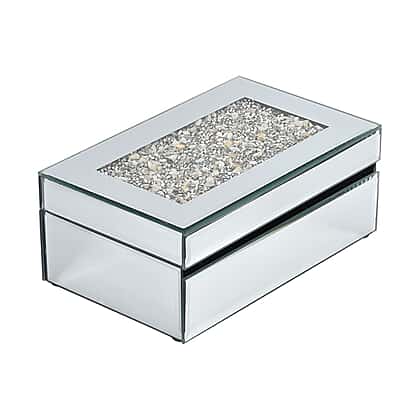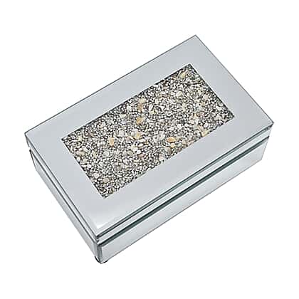 Rectangle Jewellery Box (Size 21x13x8 cm) - Silver & Cream