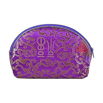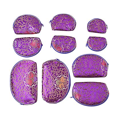 Set of 10 Multi-Purpose Embroidered Purses With Zipper - Purple