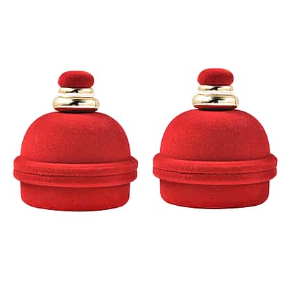 Set of 2 - Bell Velvet Ring Box in Red Colour with Tassel (Size 6x7cm)