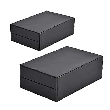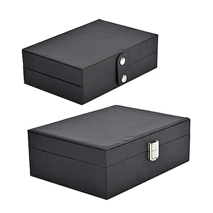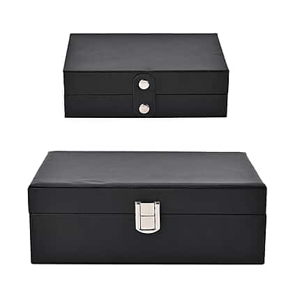 Set of 2 - Multi Purpose Two Tier Jewellery Box with Metal Lock - Black