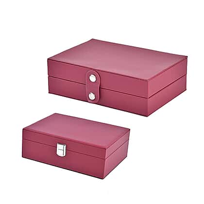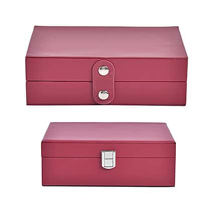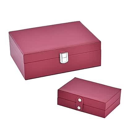 Set of 2 - Multi Purpose Two Tier Jewellery Box with Metal Lock (Size 23x17x8cm, 16x10x5cm) - Burgundy