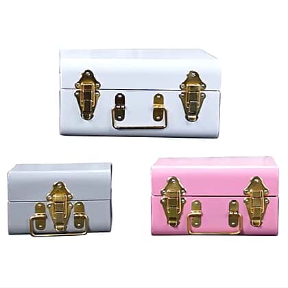 Set of 3 - Storage Trunk with Lock - Pink & Multi