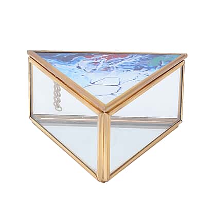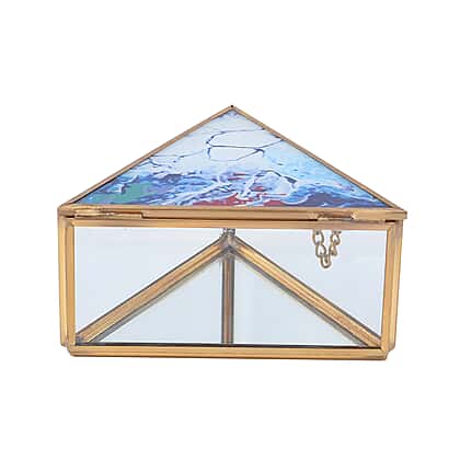Triangle Shaped Abstract Pattern Jewellery Box - White, Red & Blue