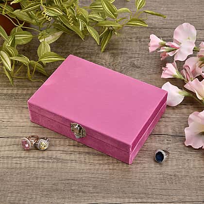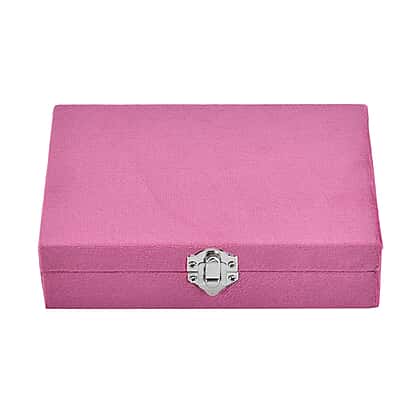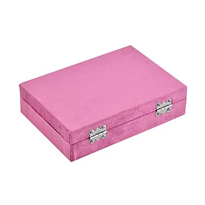 Velvet Patterned Jewellery Box with Six-Piece manicure set (Size 16x12x4 cm) - Pink