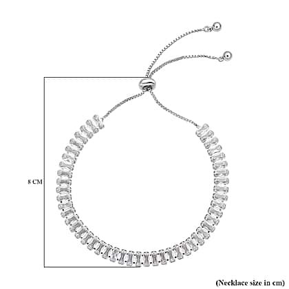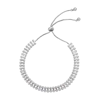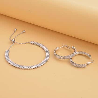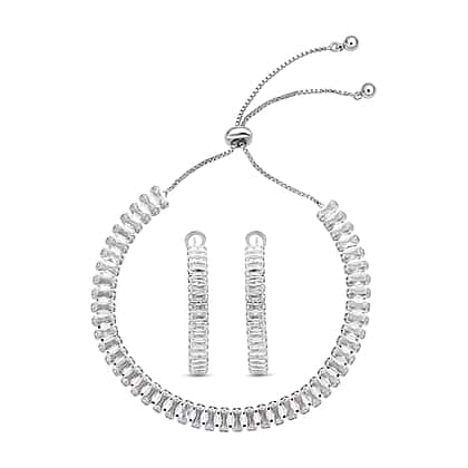 2 Piece Set - White Cubic Zirconia Bracelet ( Adjustable 6 to 9 inch) and Earring (with Clasp) Pure White Brass 19.500 Ct.