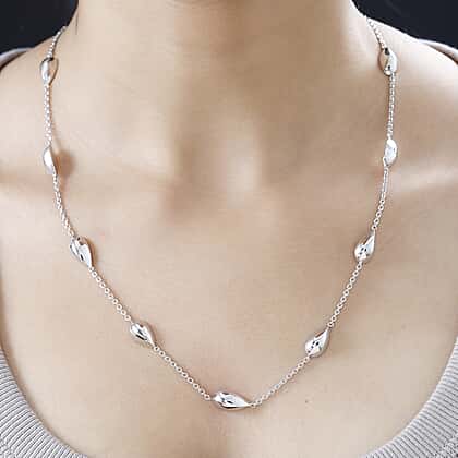 - Silver stations designed as tear drops adds to the nature-inspired look of the necklace