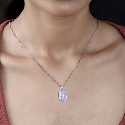 - Pendant featuring a Blue Lace Agate Cushion (14x10mm).