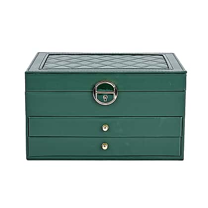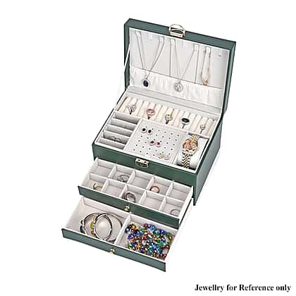 Organise your treasures in this beautifully designed 3-layer jewellery box featuring a luxurious quilted PU leather exterior. Compact yet spacious, its interior provides dedicated compartments for necklaces, earrings, rings, and bracelets, ensuring your valuables are neatly stored and protected. The key-lock closure offers added security, while the soft velvet-lined interior safeguards against scratches. With its sophisticated diamond-patterned finish, this jewellery box is practical and a stunning addition to your dressing table. It is perfect for personal use or gifting on special occasions.