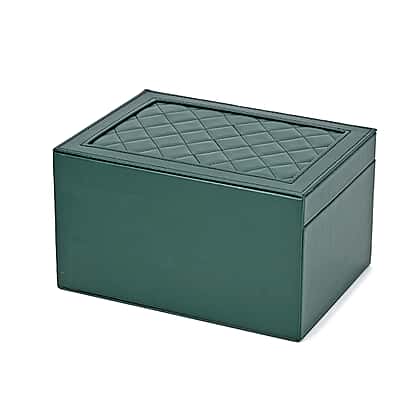 3 Layer Quilted Jewellery Box With Lock & Key - Olive Green