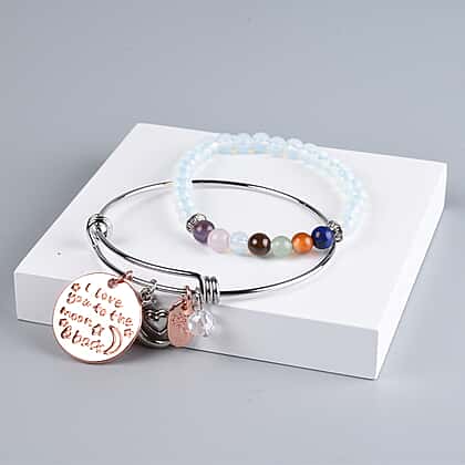 2 Piece Set - Multi Gemstones Bracelet and Bangle in Silver Tone