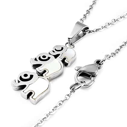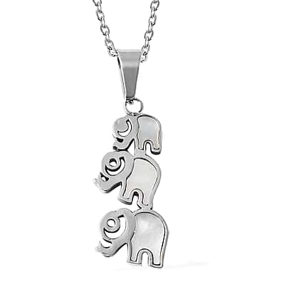 2 Piece Set - White Mother of Pearl Elephant Necklace (Size 20) and Earrings (with Push Back) in Stainless Steel