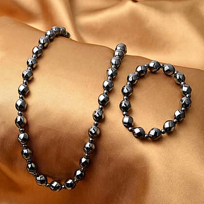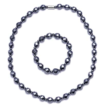 2 Piece Set - Hematite Necklace (Size 20) with Magnetic Lock and Stretchable Bracelet (Size 7.5) 802.000 Ct.